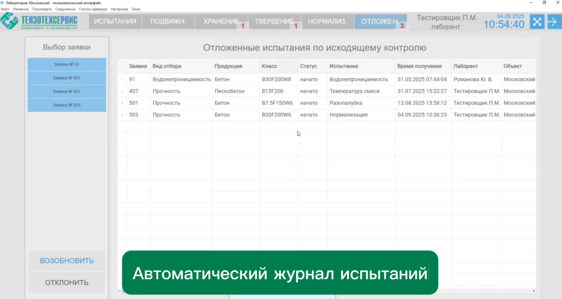 Инертные (Песок/Щебень): Зерновой состав, модуль крупности, содержание пыли/глины, влажность, пустотность, дробимость и лещадность  Работа с образцами: Автоматическое планирование сроков распалубки, нормального твердения и испытаний